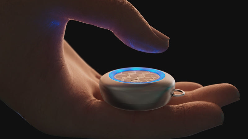 Sized like an Airtag and wrapped in premium aluminum, it fits in your palm, slides into your pocket, and clips onto your keychain – always within reach.